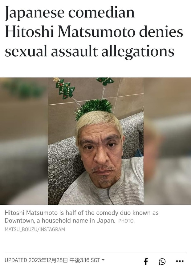 【画像】松本人志の性加害、海外でも報じられてしまうwwwwwwwwwwwwwwwwwwwwwwwww