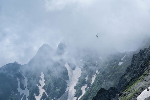【衝撃画像】空自救難隊のヘリ、『ガチでヤバイ所』に着陸してしまう・・・・