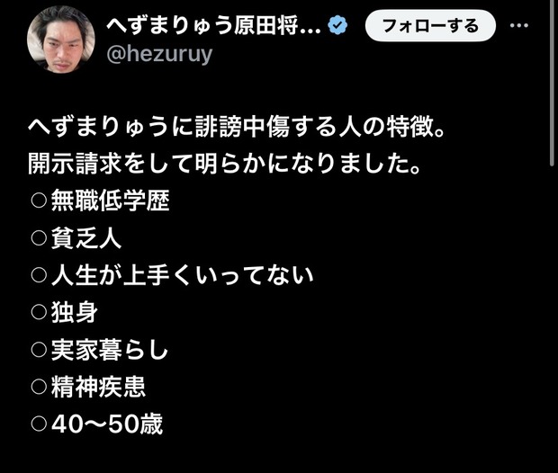 へずまりゅう「誹謗中傷を開示したらやっぱり40代~50代やったわ!」