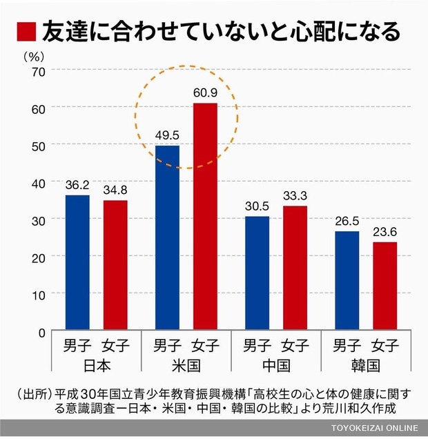 【悲報】日本の高校生さん、友達に合わせてないと不安でたまらない…