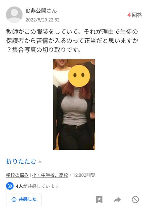 【悲報】女教師さん、服装が理由で生徒の保護者から苦情が来てしまう…
