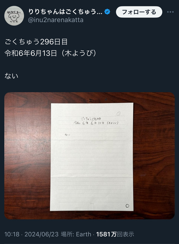 獄中女子りりちゃんの日記、ついにネタ切れ