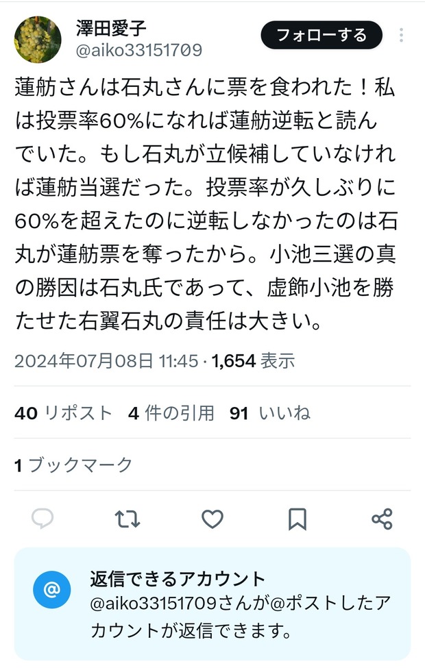 — 澤田愛子 (@aiko33151709) July 7, 2024