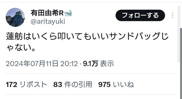 — 有田由希R🐋 (@aritayuki) July 11, 2024