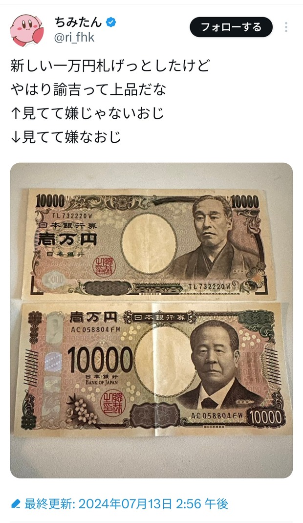 新しい一万円札げっとしたけど