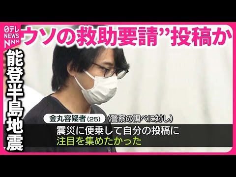 24日に逮捕された埼玉県に住む会社員の男。能登半島地震の際、SNSでウソの救助要請をした疑いが持たれています。調べに対し、「注目を集めたかった」と話しているということです。