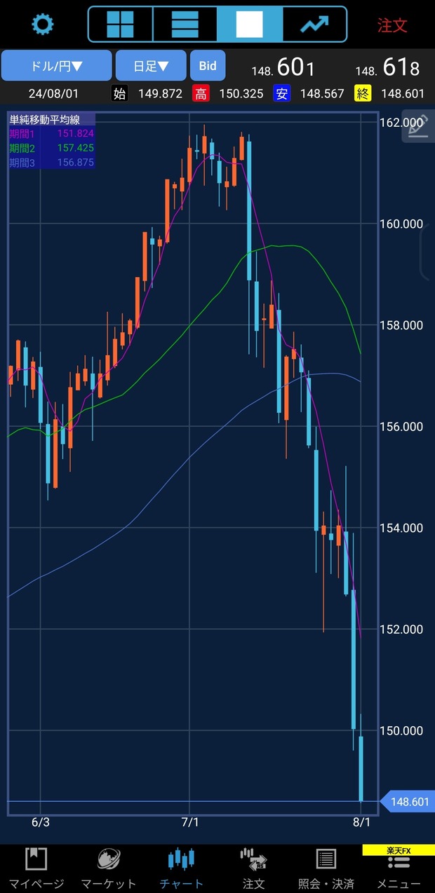 【速報】円上昇、一時148円台