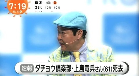 【愕然】5ch「上島竜兵が自殺した衝撃の理由、判明してしまう…ヤバすぎやろ…」→
