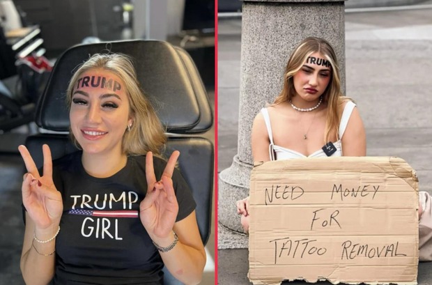 英国人のトランプ支持者の女性が先月、額に「トランプ」というタトゥーを入れたが、現在、タトゥーを消すために5000ドル(約72万円)の資金を集めている。