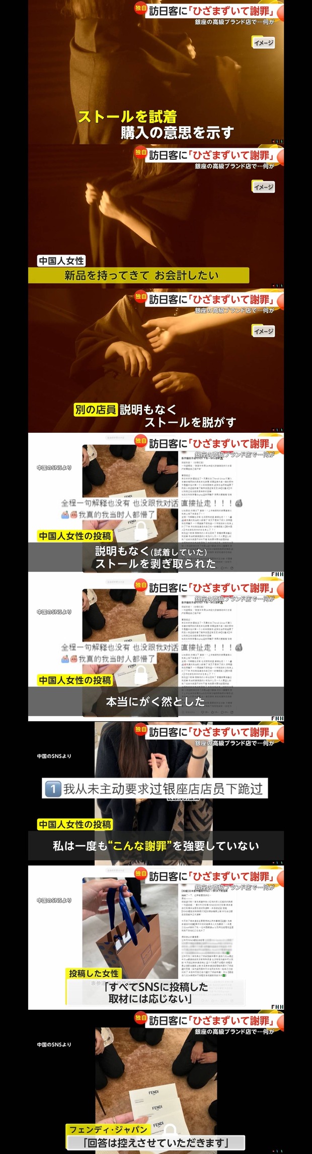 【独自】銀座のFENDIで店員がひざまずき謝罪…中国人観光客とストール試着めぐりトラブル 中国人観光客「よくあること」反応も