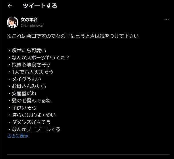 【画像】 女さん「これは悪口ですので女の子に言うときは気をつけて下さい」