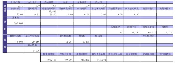 俺の給与明細クソワロタwwwwwww