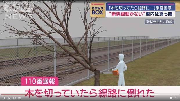 「木を切っていたら線路に倒れた」トラブルが起きた直後、新幹線の車内の映像です。当時の様子を乗客が振り返ります。