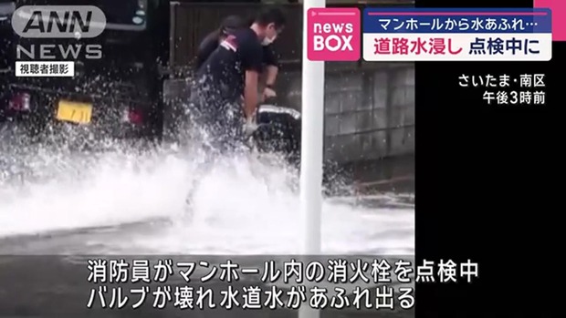 【埼玉】道路水浸し「消火栓が折れて水が漏れている」消防員が点検中…