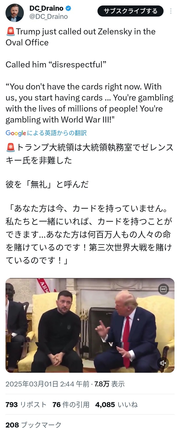 【動画】トランプとゼレンスキー、殴り合い寸前の大口論開始www