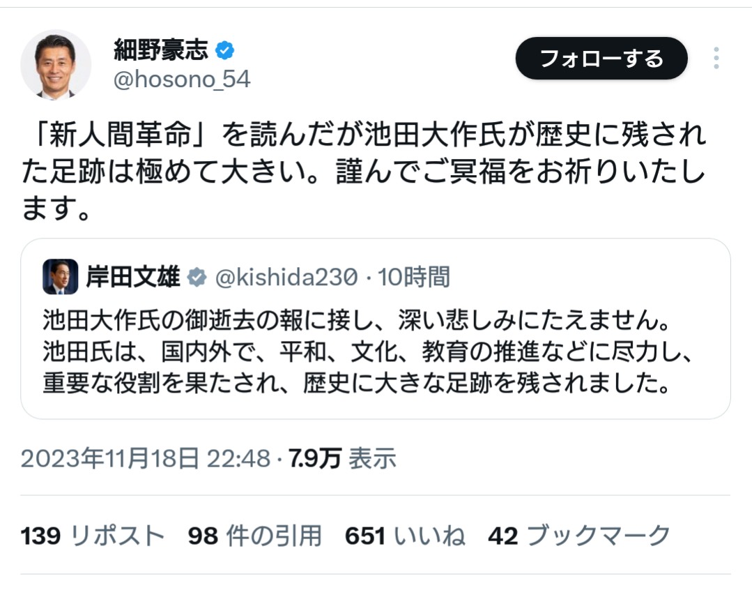 — 細野豪志 (@hosono_54) November 18, 2023