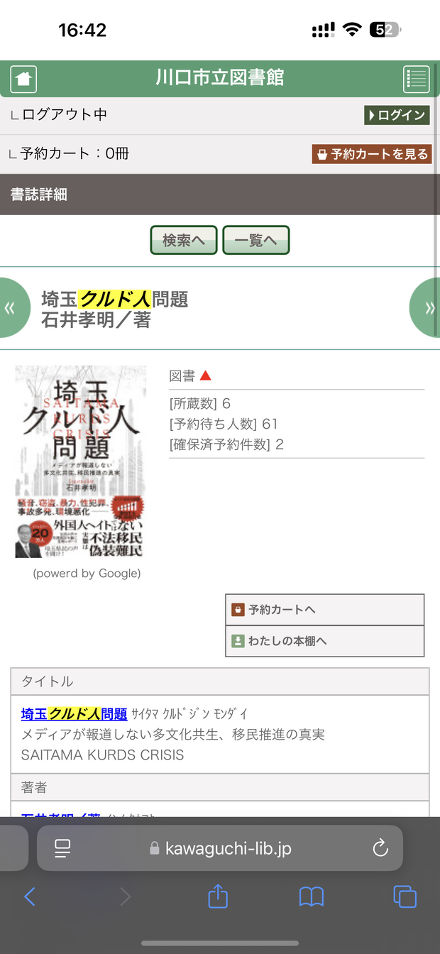 【速報】クルド人でおなじみの川口市立図書館の人気本、限界突破wwwwwwwwwwww