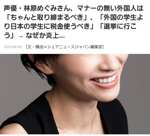 声優・林原めぐみさん、マナーの無い外国人は「ちゃんと取り締まるべき」、「外国の学生より日本の学生に税金使うべき」「選挙に行こう」→ なぜか炎上… | Share News Japan