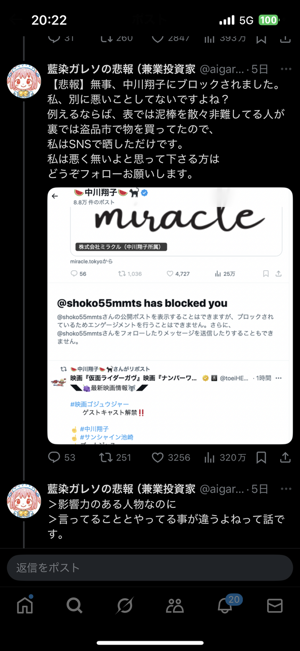 Switch2の件を巡りXで中川翔子を叩いていた人がXをブロックされた挙句