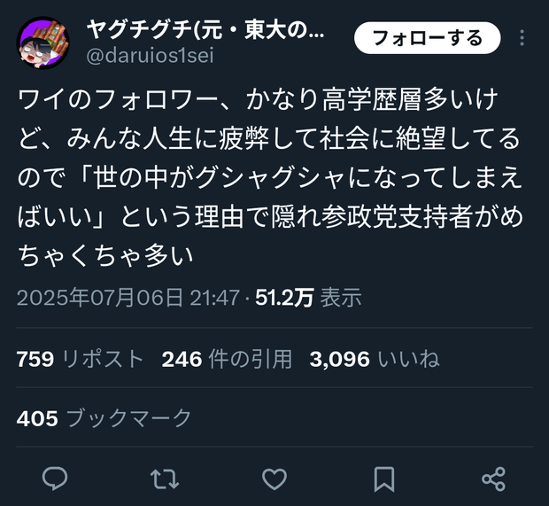 【画像】参政党支持者、高学歴が多数な模様