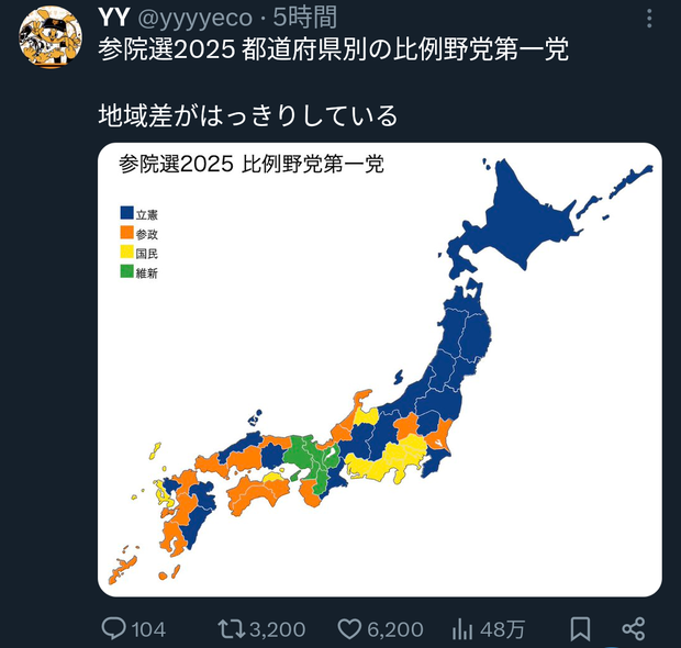【悲報】参政党の大躍進、西日本の馬鹿どものせいと判明