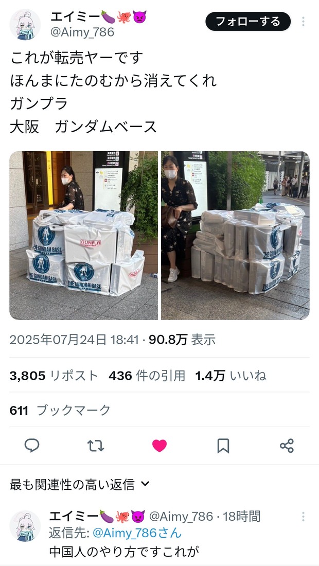 大阪 ガンダムベース pic.twitter.com/2wmTRmO5K2— エイミー🍆🐙👿 (@Aimy_786) July 24, 2025
