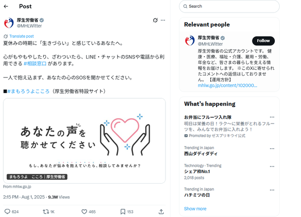 — 厚生労働省 (@MHLWitter) August 1, 2025