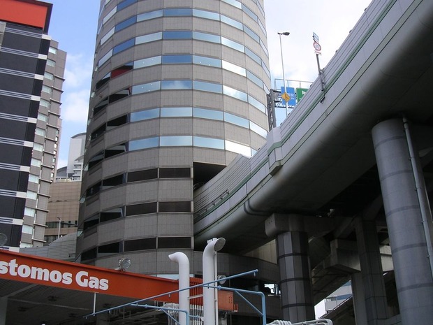 大阪のビルに道路が貫通してるビル