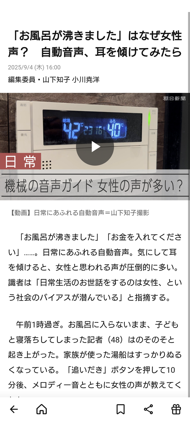 「お風呂が沸きました」はなぜ女性声? 自動音声、耳を傾けてみたら:朝日新聞