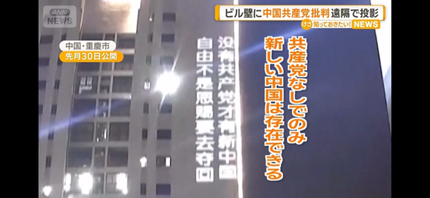 中国の高層ビルに『共産党の暴政を打倒せよ』との文字が浮かび上がる→警察官👮突入