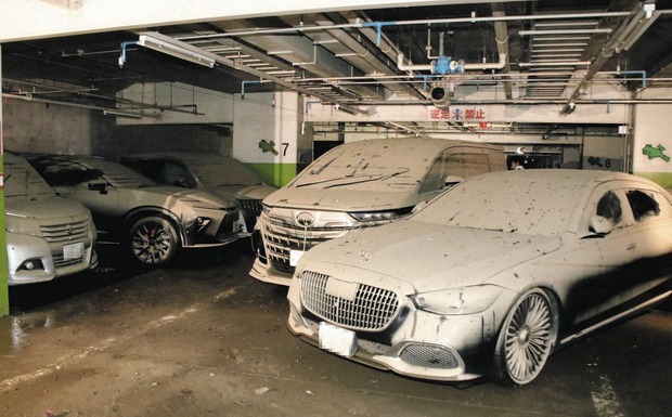 記録的な大雨で水没し、274台の車両が浸水被害にあった三重県四日市市の地下駐車場「くすの木パーキング」を運営する市の第三セクター「ディア四日市」は19日、排水作業を終えた場内を報道陣に公開した。泥をかぶった高級車やスポーツカーが重なり合い、水の勢いのすさまじさを物語った。