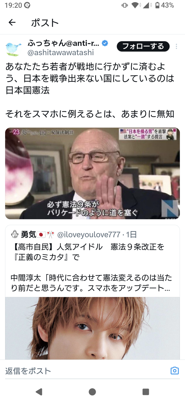 パさん「あなたたち若者が戦地に行かずに済むよう、日本を戦争出来ない国にしているのは日本国憲法」