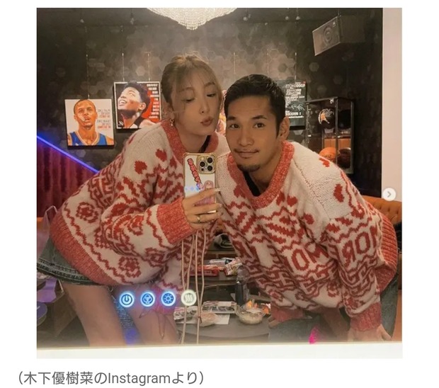 木下優樹菜、恋人のJリーガーとツーショット投稿 →「元旦那がたいへんなときに」集まる批判